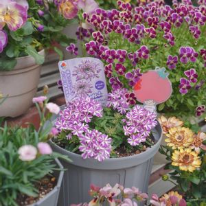 #バーベナドラムスラベンダースター ドラムスレッドシェード ドラムスピンク どちらも、花付き良くて綺麗だったので追加購入しました。 紫色のストライプが目を惹きますね✨