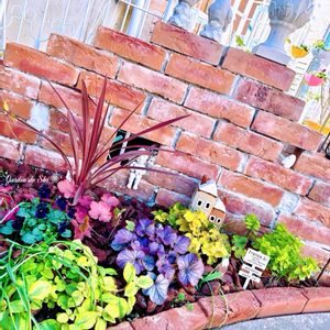 こんばんは♪ 最近 暖かくなりましたね 庭作業が捗って助かります😊 やっと一昨日不織布が取れて庭がスッキリしました♪ ①秋に作ったレンガウォールと花壇 ヒューケラ達も大きくなりました🌿 ②スノードロップが咲きました🤍 今日のお花がデージーなので ③リビングストンデージー ④まんまるなデージー💗❤️ ⑤プルーデージー💜💙 今年も種まきしましたがまだ咲くのは先になりそうなので過去picから🤭