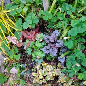 おはようございます。 雨が降る前に、移植した植物達。 (ヒューケラは、挿し穂っ子。リシマキアは鉢に生き残ってた部分。) やはり植え付けは、雨が降る前日が良いですね。