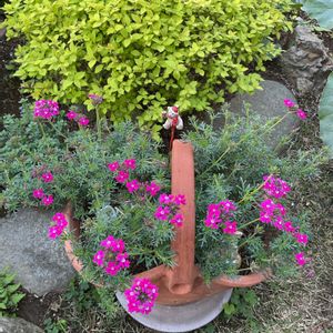 こんばんは😊〰️‼️ 宿根バーベナ🌺 寄せ植えの前方に 入れたのが、 ちょうど 良い仕事してくれてます❣️^_^ 3枚目 このギボウシさん🌿 目覚めるのが、凄く 遅かったギボウシさん🌿 やっと 活動期に。。。 4枚目、5枚目 ホウセンカが 発芽して来ました〜💓♪ 今日は、暑かったですね😥 草花も 人間も、消耗気味‼︎‼︎ これからの季節、お庭の水遣りも 何回も 水💧運んだりして、忙しい。。。
