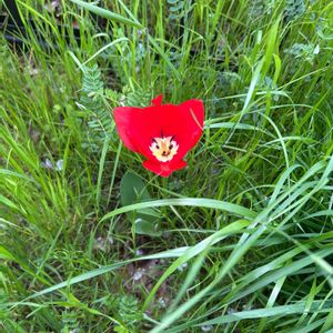 フリチラリア・エドワルディ 咲きましたぁ〜 我が家のニューフェイスです 球根は夫が買いましたなので咲いてくれてありがとう 2枚目原種チューリップ ペパーミントスティック 何年も前に初めて咲かせて 毎年咲いてくれます 3枚目ポピーの花 次々と開花 花びらひらひら 4枚目 あのネムノキに新葉が芽吹き始めました 知る人は あーあのネムノキねとなるでしょう 知らない方は何のこと⁇ 5枚目 アリウム•ネアポリタヌム つぼみは赤ちゃんがお母さんのお腹の中で被っている羊膜みたいな 薄い膜に守られています 小さい球根植物です 毎年咲きます