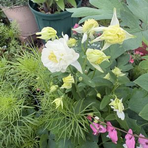 オダマキの白とタイツリソウ
