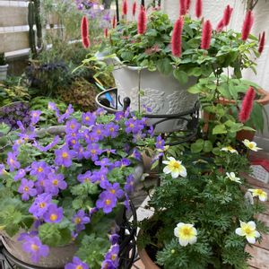 ホームセンターのハンギングに植えられていたこの花は バコパです。 柔らかい茎が 枝垂れて育つので ハンギングや寄せ植えの縁から垂らして育てるのがピッタリですね。☝️✨ 暖かい地方では 霜に当てなければ戸外でも冬越し出来る程 丈夫です。🤗 アフリカ原産。 オオバコ科ステラ属の半常緑多年草。