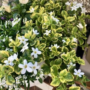 秋に植えたPWのバコパ・スノーストームが長い期間ずーっと咲き続けてくれています😊 株も少しずつ大きくなり、鉢からあふれるようになりました。手間も掛からずとっても優秀です✨️