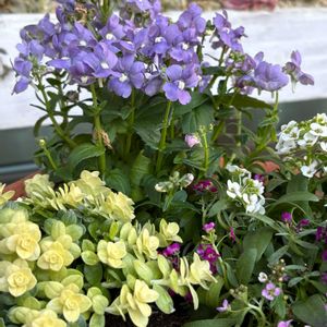 1️⃣2️⃣4種類の寄せ植え🌸🌼 バラ咲き🌹🌹ジュリアン🌸🌼2色とネメシアとノースポール🤍 全て150円だったので、この時期の植え付け不安だったけど、寄せ植えしてみました🤔💞💞 3️⃣横浜セレクション フレアブルー💛💜と斑入りフォックスリータイム☘️🤍斑入り葉🌱の先に薄くピンクが入って来ました💞 4️⃣レディ様と斑入りコプロスマの寄せ植え💜🤍💚 5️⃣アイビーゼラニウム エレガンテ 🍀☘️🌿🌱🩷寒くなると緑の葉にピンクが入って来てまたきれい😍 今日も1日皆様にとって素敵な日になります様に🤭💞✨✨ 🏷️2のつく日は斑入りの日 🏷️斑入り見つけ隊♪ No5 🏷️土曜はお空の発表会