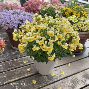🌸お花便り 【#ネメシアメーテルターメリック 】 🗓️定植2025-10/7 → 2026-4/1 (25w1d) 🗾愛知・耐寒性ゾーン8b 🧭南西 ☀️5時間 🪴6号1株 🚿週3 🧴週1 ターメリック🌱さんやっとこさ初めての満開を目指したのですが🧐なんやろこの子お花がポロポロ落ちるやん💦でも落ちるのは稀でそのうち咲きそろうだろうと思って見てたけれど😁 やっぱポロポロ落ちるやん🤣どういうこと?咲くより落ちるののが多いい気がするんだけどってさ😅ほんならまぁちょい芸術も楽しんでみたりしてみました👍どこまでもゆったりと全てを味わう事も大切なのです