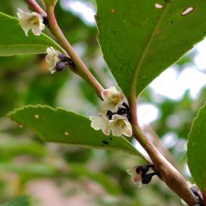 🌿ヒサカキの雌花🌿 ヒサカキには雄株と雌株があって、花が開くとどちらかがわかる。 雄花は直径5ミリメートルほどでたくさんの雄しべが目立つが、雌花は、雄花に比べると小さくて、花の中心には3つに裂けた花柱がある。 地味だけど、よく見るとやっぱりお花、可愛い😅