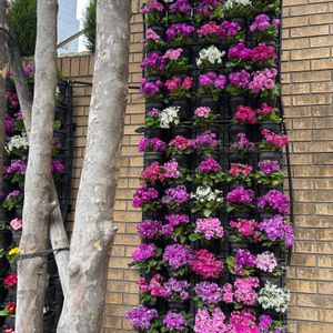 ふるさとの街の 老舗花屋さんの 壁面緑化 プリムラでコラボ🌸 こんな壁ほしいわぁ❣️