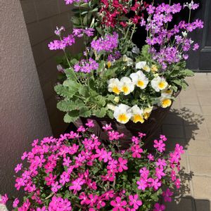 #お出かけ先 ①桜草 ②ビオラ ③分からないんです⁉️ 何方か教えていただけると🙇🌼