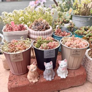 こんばんは✨✨ 🏷️ニャンニャン祭り ナチュラルキッチンの🐈🐈🐈 セリアのブリキ缶に穴を開けてつぶつぶちゃんを植えました🍀 並べると可愛い💕 実家の庭で可愛いお花みつけた🌼 pic2 アプリで調べたら 『コバノタツナミ』って言うらしい pic3 桜草 pic4 お花咲いてる♡名前ド忘れ pic5 いつかあげた多肉寄せ植え 何年前かなぁ?