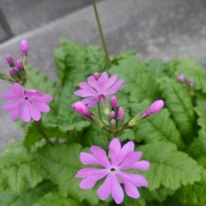 サクラソウ サクラソウ科 昨秋 植え替えましたが、なんとか芽が出てきて 遅い開花となりました🍀