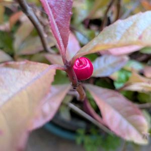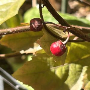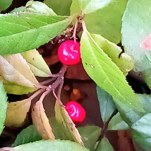庭の隅っこにある こぼれ種のヤブコウジは ピカピカの赤い実が一つ 葉っぱも紅葉しています🥰 赤い千両も 黄色い千両も 今年は実がつきました🙌 私が留守している方が 成績が良いようです😅 2ヶ月の留守中 鉢物は殆ど全滅😭 地植え物は何とかセーフ😮💨 万両は出先にて