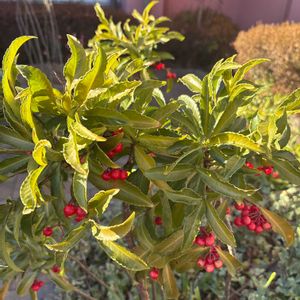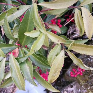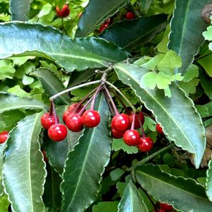 庭の隅っこにある こぼれ種のヤブコウジは ピカピカの赤い実が一つ 葉っぱも紅葉しています🥰 赤い千両も 黄色い千両も 今年は実がつきました🙌 私が留守している方が 成績が良いようです😅 2ヶ月の留守中 鉢物は殆ど全滅😭 地植え物は何とかセーフ😮💨 万両は出先にて