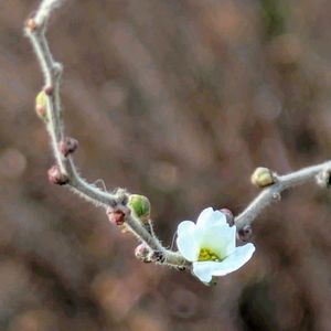 オカメザクラは早咲きで、1947年にイギリスでカンヒザクラとマメザクラを交配し作出され、後に日本に逆