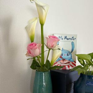 * 後輩の結婚式でいただいたお花が可愛くて♡ 家に飾ってたかすみ草と合体! そこまで違和感なくいい感じ! 久しぶりに結婚式出席して、幸せ分けてもらえて…🫶