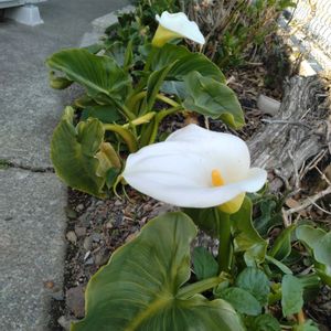 カラー 散歩途中の道路側の花壇で見掛けました。