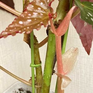ベゴニアマクラータ❤️ いつの間にか生えていた新しい茎。新しい葉と同じように最初は薄っすら赤くて可愛い🩷大きくなった葉の裏は結構濃い赤❤️
