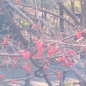 ブツブツ特集 苦手な人ごめんなさい🤭☺️ サンシュユの赤い実♥️ 四季桜🌸 ムラサキシキブ💜 植物園で 今夜は雪❄かな😭😱💙💦
