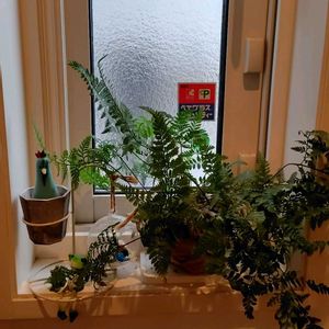 🏷️毎月4日はシダの日 うちのトイレの #トキワシノブ ボーボー過ぎで〜とMikiさんに見せたら シノブカットしなさいよ! と言われたので、カットしてみた🤣💕 おかげで置物が見えるようになったよ🤣🤣🤣