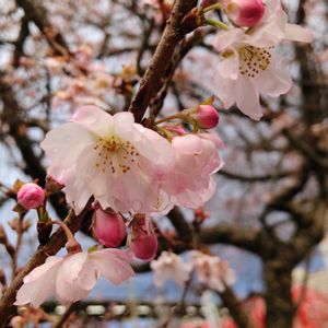 こんばんは♪ 昨夜から雨が降り、雪になりそうな寒さでした☂️ 乾燥していたので、良いお湿りになりました🌱 今日のお花 フユザクラ🌸 午後過ぎに雨が止んだので、近くのお寺で咲いてる桜を見てきました🌸 雨だったけれど綺麗に咲いていました🌸 足元には着生植物のトキワシノブがありました🌱 こちらは雨で葉が綺麗になり、ピカピカでした🌱