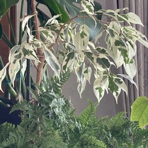 フィカス ベンジャミン & 常盤忍(トキワシノブ) こんなミスマッチな組み合わせで何年も一緒 何故か この組み合わせが残りました 最初は小さなベンジャミンの 観葉寄せ植えに何種か植え込みましたが この二種だけが残り放ったらかし 何とかせねば、、、、、、 来季はベンジャミン同士 シダ同士にと思っていますが 手遅れでしょうか? ベンジャミンは編み込みが素敵💓ですね🤗 暖房が効き過ぎると乾燥するし 植物が潤うと 寒がり人間が騒ぐし、、、、、、 冬の管理も大変だが 緑🟢に癒されています😅 皆さん 風邪など引かないよう気をつけてクリスマス🎄🧑🎄お過ごしくださいませ🤗