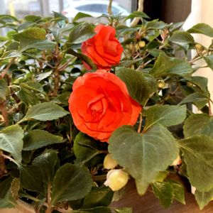 1️⃣2️⃣バラ咲きインパチェンス🌹 暖かい出窓でぬくぬくと…大きく咲いてます☺️ 3️⃣沈丁花の蕾…もうすぐですね、いい香りが待ち遠しい 4️⃣5️⃣真っ青な空と明治神宮の森と鳥居⛩️
