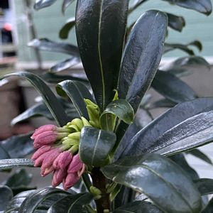 沈丁花のつぼみ 家族が折れて捨てられてた枝を拾ってきて 挿木した沈丁花 もう7年は経つかなあ