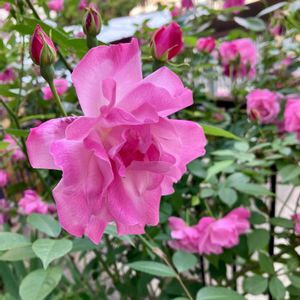 今夕の庭から… 17:51〜18:17 つるバラ スパニッシュビューティー ❶❷ 大輪でも軽やか ❸ ピンクとオレンジが響きあう ❹ この咲き方も可愛い ❺ バラが終わるとこの場所に プルンパーゴが咲きだす 🏷️金曜ローズショー