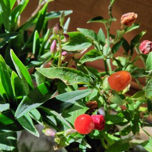 今日は実と新芽🌱と花芽です。😃 昨日は植物達💐🌳🌵🪴にもご馳走(固形肥料とか活力剤とか)をあげてみました。 大きくなってくれるかな。 1pic目:左がキンギアナム・キャンドルライト🕯️さん。花芽がたくさんついています。数日前から色づいてきたので、開花も近そうです。😃 右が五色とうがらし🌶️の実です。色が変わるのですが、最終形態の赤🔴になっています。ぷっくりとして可愛い❤。 この2つは寒いのが苦手なので、春まで室内です。 2pic目は胡蝶蘭達です。左のミディ胡蝶蘭も花芽を出してきました。→の先のが花芽で、それ以外に出ているものは根っこです。 右のマイクロ胡蝶蘭は→の先の思わせぶりな出し方をしてますね。花芽なのか根っこなのかどちらでしょう🤔。 位置からすると花芽っぽいのですが…。 なお、花芽は葉っぱ🌿の折り目のあたりから出ます。根っこはどこからでも出ますね。なんなら、根っこは葉っぱ🌿の上とか、真上に伸ばすとかやんちゃなことをするのもいます😅。 最終的に伸びたものの先がツルッとしていれば根っこ、先が割れていれば花芽です。 3pic目は手前が水仙の芽🌱です。最近咲いてくれませんが、毎年律儀に葉っぱは出します。今年は咲いてくれないかなぁ。 奥に伸びている元気な葉っぱはフリージアです。このコは毎年咲いてくれています。 あと、まだ頑張っているマツバボタンちゃんも映っています。今日も赤いお花が咲いてくれました。 4pic目はハイビスカス🌺さんの極小のつぼみです。 夏に弱ったので、肥料を少なめにしたら、なかなか咲いてくれませんが、つぼみは復活し始めました。 5pic目はオリヅルランさんのランナーです。 つぼみがふっくらしているので、また咲いてくれそうです。あと子株も増やす気満々のようです。