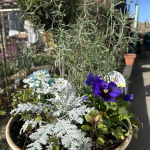 花散歩で✨ 🤍🤍💜💜🎄💛🤍💜💜🤍🩷🤍♪ ご近所の 素敵な寄せ植え🤩 1️⃣ビオラ イベリス他 白いお花が素敵な一鉢 2️⃣ビオラ ブラキカム 紫色が素敵な一鉢 3️⃣ドイツトウヒの素朴なツリー🎄 昨年と同じように公園で! 4️⃣ビオラ ブラキカム他白いお花 も素敵な一鉢 5️⃣プリムラ 薄いピンクが素敵な一鉢 今日も 笑顔😄で 過ごせますように💐