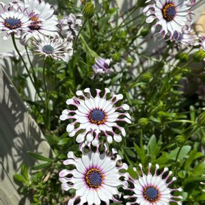 もう何年も咲き続けているオステオスペルマム。 1枚目のサニーフィリップが我が家では一番相性がいいらしく、かなり大株。 挿し芽してあちこちで咲いてくれています。 我が家の庭のいいアクセントになってくれています。 バサバサ切っても、新しく新芽を伸ばしてくれる、ガーデン向けの多年草ですよね😊