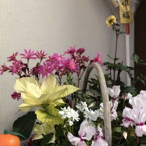 🌃新年おめでとうございます 本年も宜しくお願いします🙇♀️ お嫁さんがプレゼントしてくれた花苗を籠盛りして飾りました☺️ 年始の集まりも賑やかにお開きできて、、ジジババ二人‥ホット一息🍵 🌸レウィシア 🟨ポインセチア ⚪️イベリス 💓シクラメン プリティムーラン 🏵️ダリア ガタの来た身体と上手に付き合って楽しく生きたいです^_^ 花と木に癒されてね🌸🌳😄