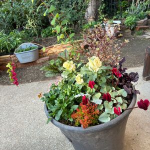 久しぶりに寄せ植え♪ 冬の寄せ植えは、隙間無くぎっしり詰める感じで植えました。 成長が遅いから、隙間がなかなか埋まらないので。 でもちょっと盛り沢山人なっちゃったかなぁ このシクラメンの色合いに惹かれて、イメージを膨らませて他の花材をチョイスしてみました。 うーん、まとまってるかどうかは、自信無いけど、自分的には、満足☺️いい冬が迎えられそう💕
