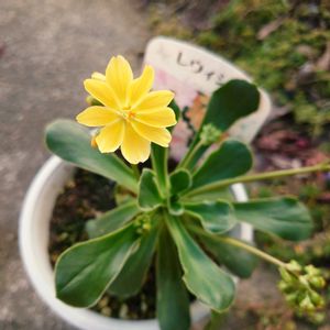 レウィシア 管理がうまくできず、大きくならないままで3年目のレウィシア。 2年間は、ピンクがかったオレンジ色の清楚な花をつけました。 今年は何故か先祖返りしたしたようで、こんな黄色い花をつけました。