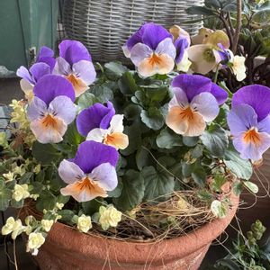 こんにちは😊☁️10℃ クリスマスローズで賑わってきましたが他のお花達も虫も少なく1番いい時ですね☺️ ①ビオラ💕1ポット80円ぐらいの名無しの子ですがお気に入り🥰 ②レウィシア💕 この色好き〜 ③名無し2〜濃いですね〜😊 ④ジュリアンとネメシア ⑤種まきからのビオラこれは レディを大きくしたような感じ💕 1ポットでも存在感あります まだ植えてないポットがあと2つ 我が家のスペースにはちょっと できすぎた嬉しい誤算です😅 好きで全部欲しくなって欲張りすぎました😆