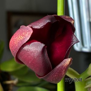 1、2、3枚目:Cyc.Taiwan Black Pearl(Red) 蕾は3個ですが同じ大きさに成長して開花してくれたのは2輪、多分1輪はシケちゃうかな…大人っぽい深みのある赤い色がとても素敵に見えます。香りはまだしません。これからが楽しみです。 4枚目:スミレ 小さな春を見つけました😊