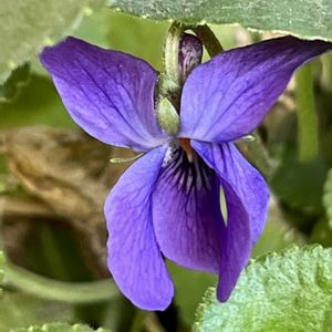 散歩で出会った根性スミレ 歩道のガードレールから芽が出てる 固いのに 頑張ったね 褒めてあげたい👏 小さい蕾 咲くかな?