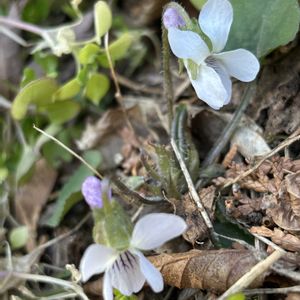 おはようございます☁️ 昨日は、25°と急に気温が上がり もわっとして気持ち悪いくらいでした。 いつも早く咲くここのスミレが 何株が咲いていました。 白っぽいお花💜🍀🍀 この子はアオイスミレと教え頂きました。 紫のはコスミレちゃんです。 ここにアオイスミレが咲くのは嬉しい事です。 セリバオウレンもこの間より多く出ていました。