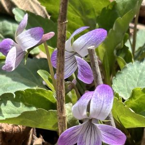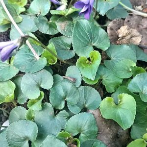 岡山の庭の 2つのスミレ ①②黒葉スミレ こぼれ種から ③④⑤ 葉っぱが細長くなって来た⁉︎ ナガバタチツボスミレでしょうか? それともタチツボスミレの変化でしょうか? 違いがイマイチわからない😕 🏷️すみれの迷いみち