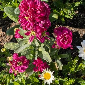 所用で豊橋駅前に来ました。色とりどりのストックが咲いていました 1️⃣赤紫のストック 2️⃣3️⃣散歩道のパンジー 4️⃣花苗コーナーのプリムラジュリアン 🏷️真っ赤な火曜日