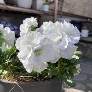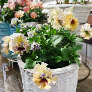 フリル咲きパンジーの遊花です🌼 未発表品種だそうで、希少なお花かと思います✨ 最近は暖かくなり、どんどん花を増やしてきてくれています🥰