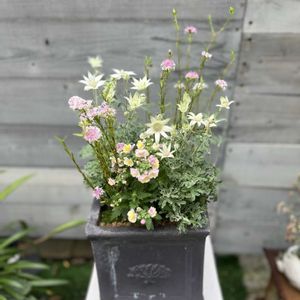 小花いろいろ ①…アリッサム ミックス 3ポット 寄植えに使うつもりだけど… 取り敢えず、纏めて一鉢に…💦 ②…パープルのネメシアと カーネーション ③…スプレー菊がモフモフ ④…大好きなフランネルフラワー 今年はモフモフにならない💦 ⑤…千両、3年目にしてやっと実を 付けてくれました、 お正月に飾れる〜🥰