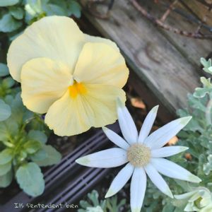 🌸冬の寄せ植え🌸 ✨ときめきビオラ✨ ひらひら蝶々 透明感のある優しさ ディアミッキー アンティークカラー 可愛らしさにときめいたわ💕 ✨フランネルフラワー ✨ポリゴナム ティホン 白の花と斑入りの葉っぱ フランネルフラワーは寒さにどこまで持ち堪えるかなぁ⁇と ちょっと心配🙁 今日はウォーキングで、三色彩道の紅葉🍁をたのしんできました🍂🍃