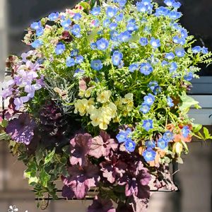 スリットバスケットの今 12/22に投稿したスリットバスケットが 春の装いになりました🩵💙 葉っぱ🌿いっぱい入ってますよ😄 ①青いシャワー🩵💙にしたくて 何度もネモフィラをあちこちピンチ✂️ なんとかそれらしくなりました♪ でも、右側が凹んでますよね? ②右側に、葉っぱ🌿がロゼット状の アジュガを3種類も入れたから🤣 アジュガも咲かせたくて こっちに陰を作るネモフィラを 何度も切りました✂️ この奥まって咲いてるのは アジュガ ブラックスカラップ ③更に右端にはアジュガ ロゼア🩷 この子はニョキニョキ出て咲いてます🤭 ④左側はビオラ多めで華やか💖 ⑤水やりは低いフェンスに掛けて… 毎回ネモフィラを持ち上げるので ネモフィラのどこかしらがポキッ😅 🏷8日は葉っぱの発表会 🏷毎月8日は鉢の日 🏷水色の恋♡ 🏷青い花マニア 🏷水曜日は水色 🏷素敵な水曜日 🏷ビオラ・パンジー祭り♪ 🏷秘密の花園♡ 🏷花咲く乙女たち♡ 🏷スライドショー♪ 参加させて下さい🩵💙( ꈍᴗꈍ)