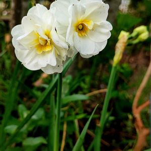 雨が上がりました。地域の川掃除だったので、家の周りの道路をせっせと掃除してきました。うちの周りは超!水に恵まれているが故に、昔は、大雨が降ればほぼ確実に床下浸水&10年に一度くらいは床上浸水ってくらい水害が多かったので(今は川の周辺の整備も進みそんなことも無くなりましたが)その頃からの習慣?で、大雨の時に側溝が詰まらないように月イチくらい?で地域ごとに皆で清掃&点検をするようになってます。 今日は実際に川にちゃんと排水されるか点検&清掃のために消防車も来て側溝に放水していました。遠くから見たけど、子どもたち大喜びな感じで楽しそうでしたw 庭ではまた新しい水仙が開花してました。チャフルネスかなー。ちょっと前に咲いていたサーウィンストンチャーチルともしかしたら一緒かもしれません。まぁ可愛いのでなんでもいいですわ。ミツカドネギも花がちょっと増えました。 二期咲きのビバーナム ステリーレ、お花がだんだん白くなってきました。庭のちょうど真ん中にあるので、我ながらいいところに植えたな…と色んなところから見てニマニマしております。 うちで唯一のクルメツツジ 麒麟も一気に花が咲いてきました。蕾がついてから咲くまでがあっという間で、ほぼ蕾を見た記憶が無いくらいです。ダブルで花付きが良く、色も可愛くて、とっても丈夫な子です。