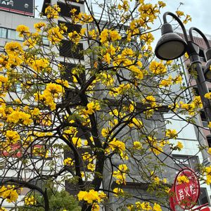 相楽園を出た後は南へ下って 東遊園地へ向かいます。 途中黄色の鮮やかなイペーが咲いていました。 東遊園地は工事が完全に終わってから初めてなので久しぶりでした。 新しく出来た花壇に初めて見る花が咲いていました。検索でハマナとでました。