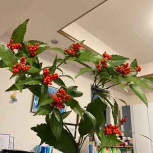 『利益』『祝福』『富』『財産』『恵まれた才能』。「利益」「裕福」「富」「財産」などは、たくさんの実をつけ、豊かなイメージがあることに由来します。お正月に飾る縁起のよい植物のひとつです。花期は6~7月です。