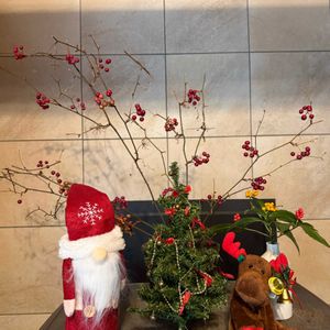 🎄Merry Christmas🎄🎅✨ 雪では無くて雨のクリスマスイブになりました🎅 庭のセンリョウの🔴赤と🟡黄色を玄関に飾って なんと!3月までここにいてもらいます🤩 玄関の下駄箱(言い方古い🤣)は造り付けで長いので 他にも絵とか干支の飾りとか鉢物など置いてますが、 真ん中にはこれ❣️ 明日までは鋳物のサンタさんにいてもらって 明後日からは正月🎍飾りですよ😄