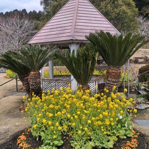 こんにちは😊♪ お疲れ様です☕🍰 本日2回目の投稿 失礼します お出かけ先🚗 山口フラワーランドで 撮影したpicの続きです😄 (何度もすみません😅 もう少しお付き合い下さいね) ①②ソテツと菜の花🌿🌼 ③④花壇のお花 ⑤お花の観覧車🎡 人は乗れません😢 小さくて見えにくいですが ビオラのお花が植え込まれています🪴 撮影日2026.2.28 見て頂きありがとうございます😊🍓