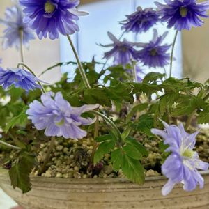 花友さんご夫妻が出品されている 春の山野草展を見て来ました😍 素敵ブルー系をセレクト💙☝️ 🏷️毎月8日は鉢の日🪴 《スライドpic》 ①キクザキイチゲ ②タツタソウ ③ラペイロージア・オレオゲナ 初めての出会い💓 ④ケイビアヤメ ⑤ムシトリスミレ